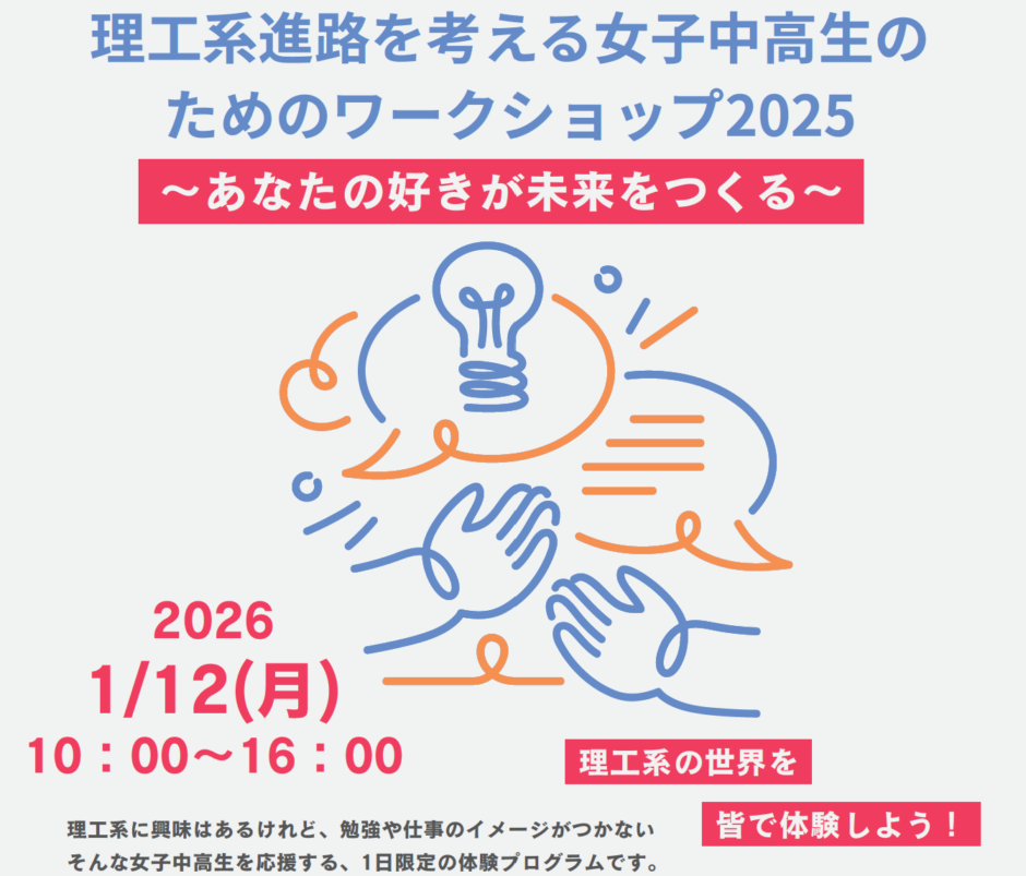 タイトルは、「理工系進路を考える女子中高生のためのワークショップ~あなたの好きが未来をつくる~」札幌市男女共同参画センターとの合同企画です。